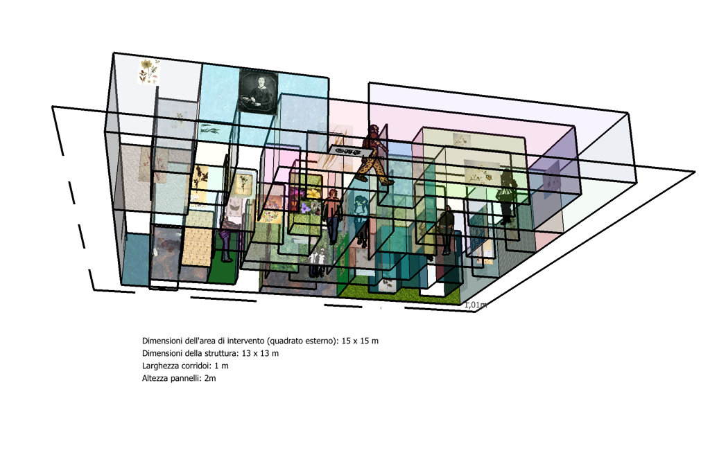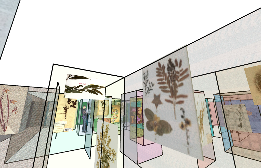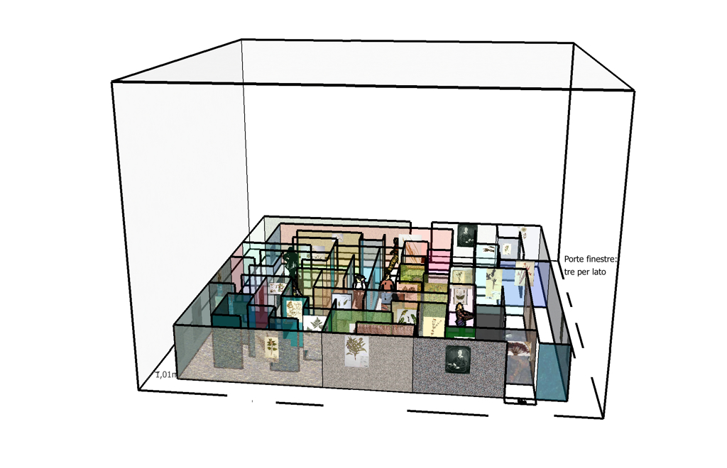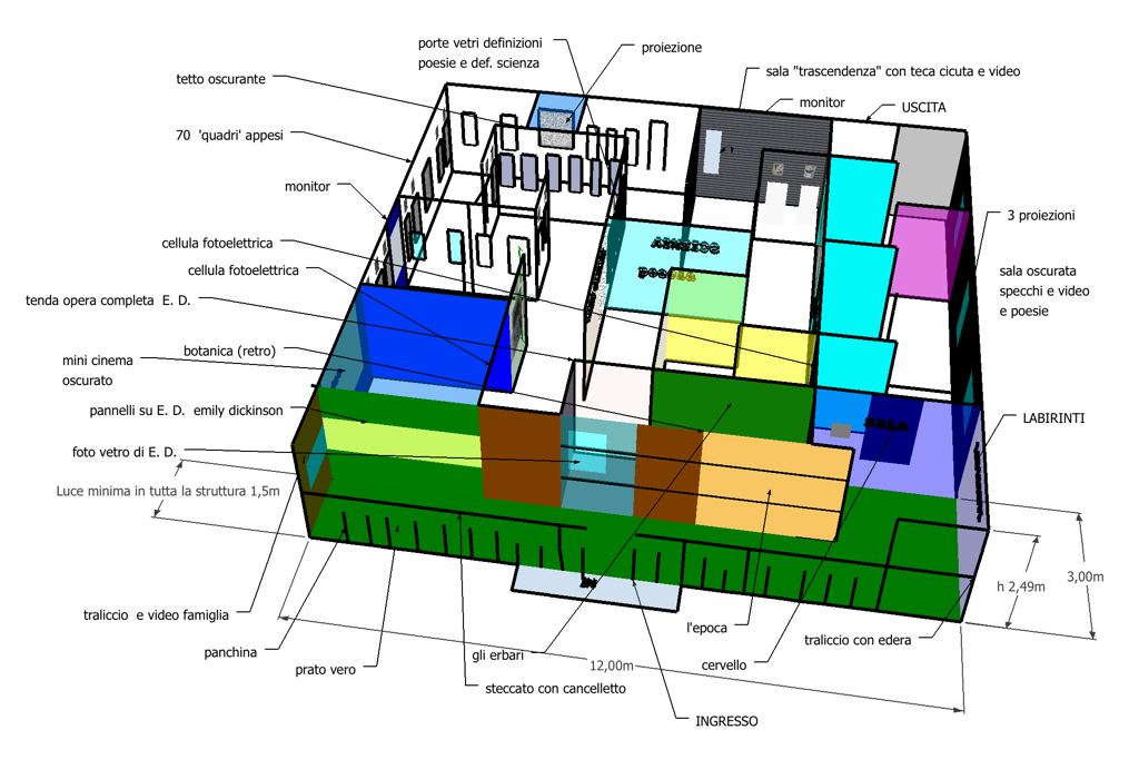 Esibendo una struttura destinata per disegno a crescere nel tempo, nella stagionalità ipotetica del suo riproporsi in musei e spazi accoglienti; casa viva nella sua volontà di arricchirsi sistematicamente e indefinitamente dei suoi materiali, quelli del rapporto botanica/poesia dickinsoniane – specie dei generi maggiori Scienza e Poesia; proiezione ortogonale di pagine scritte: pianta messa a dimora nel terreno di una Genova luogo al tempo stesso di coltivazioni, di partenze e di cantieri.